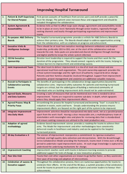 The Hospital Handover Delays Collaborative programme at NWAS used an approach first described by the Institute for Healthcare Improvement (IHI) called the Breakthrough Series.